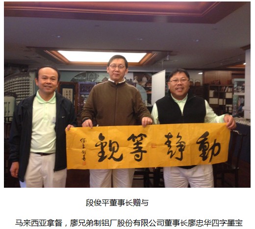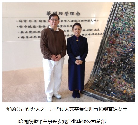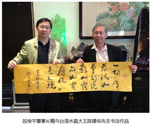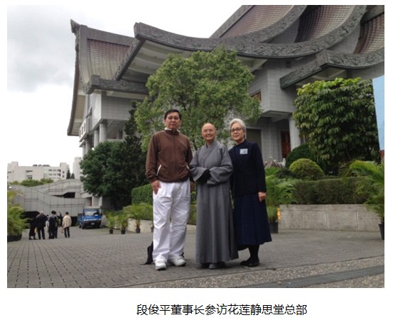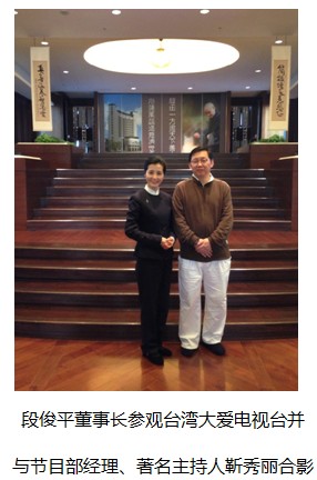 在赴臺參訪中,段俊平董事長與慈濟基金會創(chuàng)辦人、臺灣佛教高僧證嚴法師、華碩公司創(chuàng)辦人之一魏杏娟、馬來西亞拿督、廖兄弟制鋁廠股份有限公司董事長廖忠華、臺灣大愛電視臺著名主持人靳秀麗、臺灣水晶大王陳建佑等臺灣知名企業(yè)家和文化學者進行了一系列的文化交流活動,為海峽兩岸共同弘揚中國傳統(tǒng)文化、推助慈善事業(yè)的發(fā)展做出了積極的貢獻。